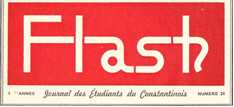 l’équipe qui a lancé Flash dans le numéro 36 d’Octobre 2004 de la revue ‘’Les Bahuts du Rhumel’’ publiée par l’ALYC = Amicale des Lycées de Constantine . Les bahuts du Rhumel - Cliquez ici Cette revue est éditée grâce au talent d’un ancien journaliste de la Dépêche de Constantine Jean BENOIT. |